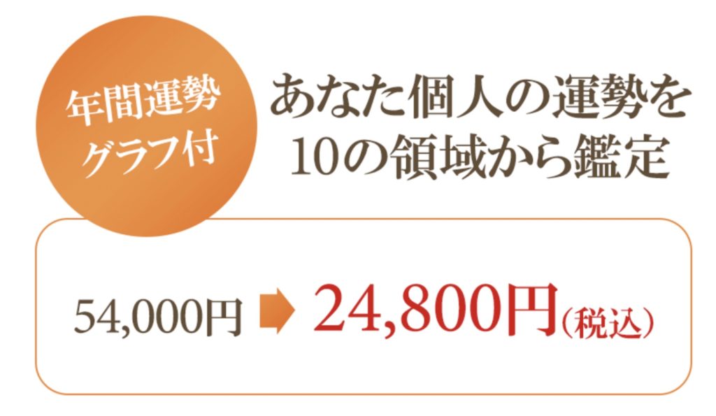 10の領域にわたって、年間運勢グラフ付きで丁寧に鑑定します。